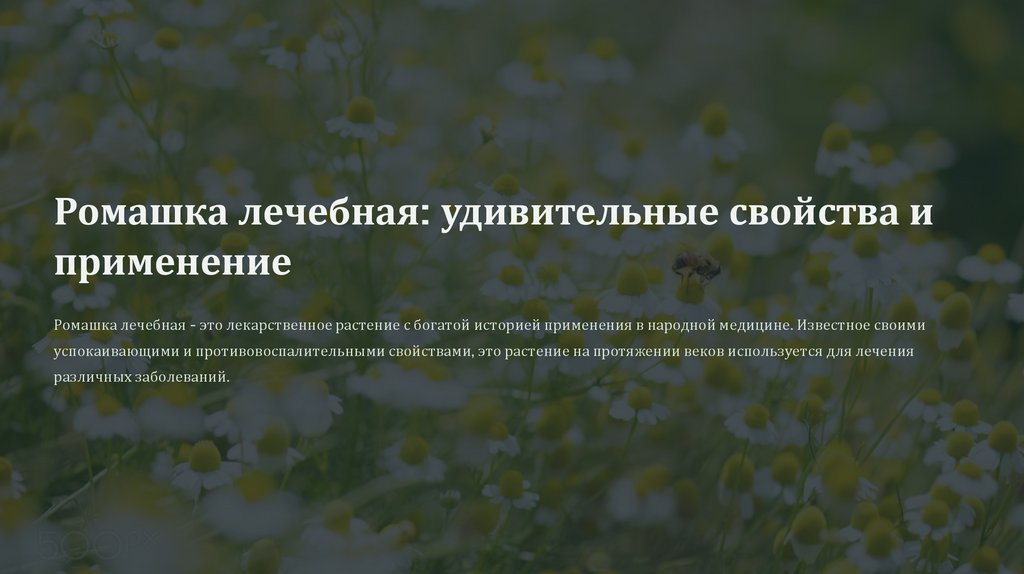 Ромашка лечебная - это лекарственное растение с богатой историей применения в народной медицине. Известное своими