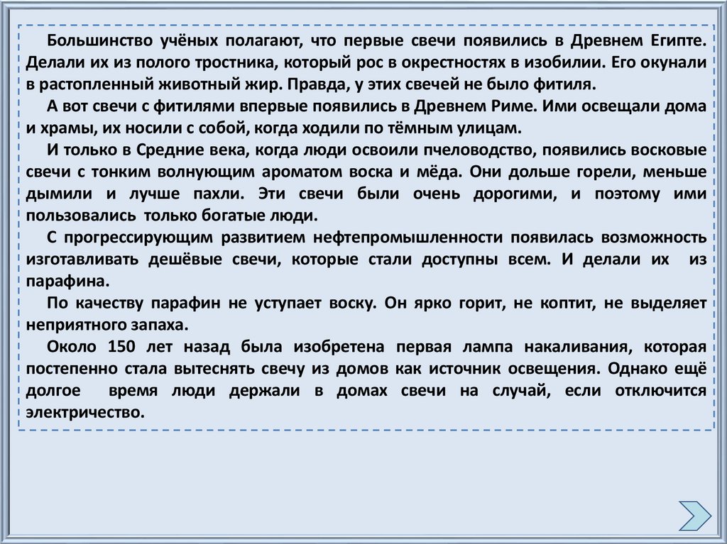 Подчеркни вещество для изготовления свечей, о котором не говорится