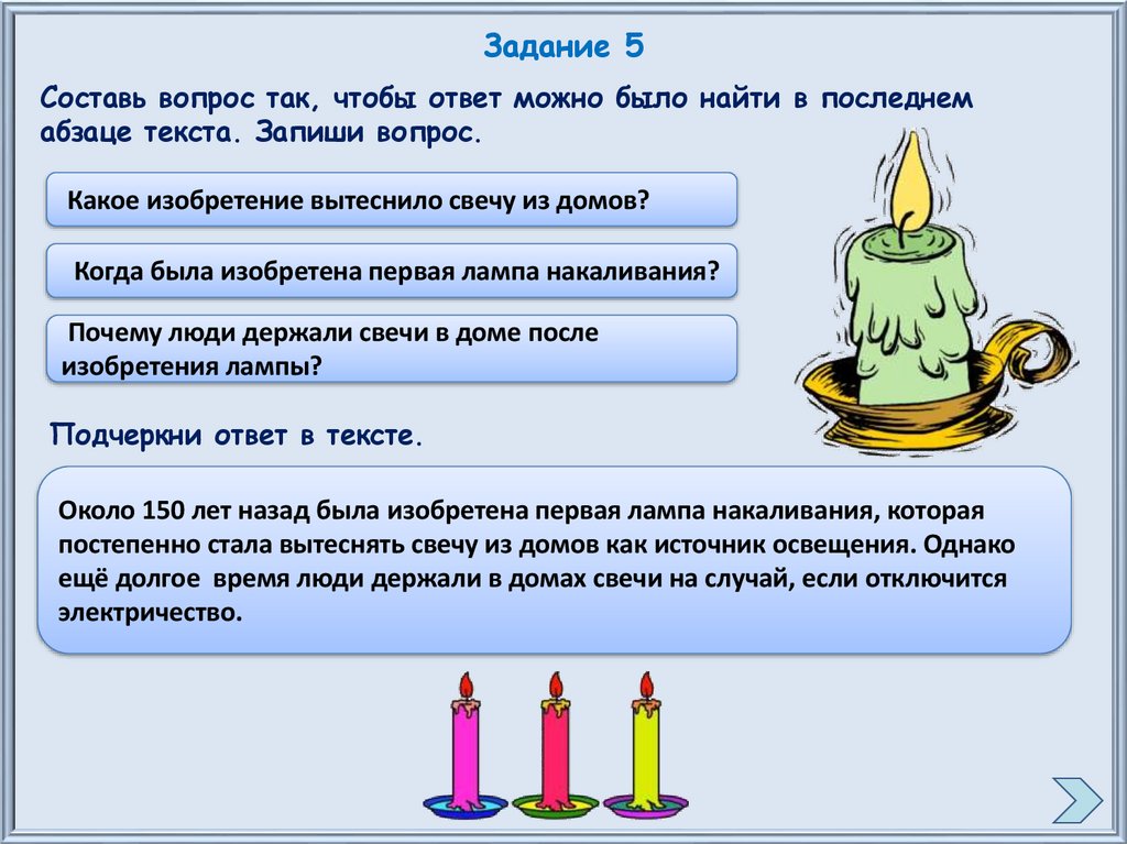 Задание 5Составь вопрос так, чтобы ответ можно было найти в последнем