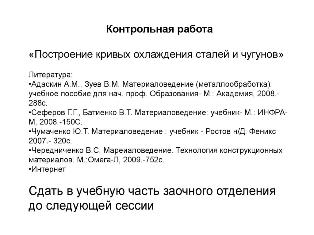Контрольная работа«Построение кривых охлаждения сталей и чугунов»