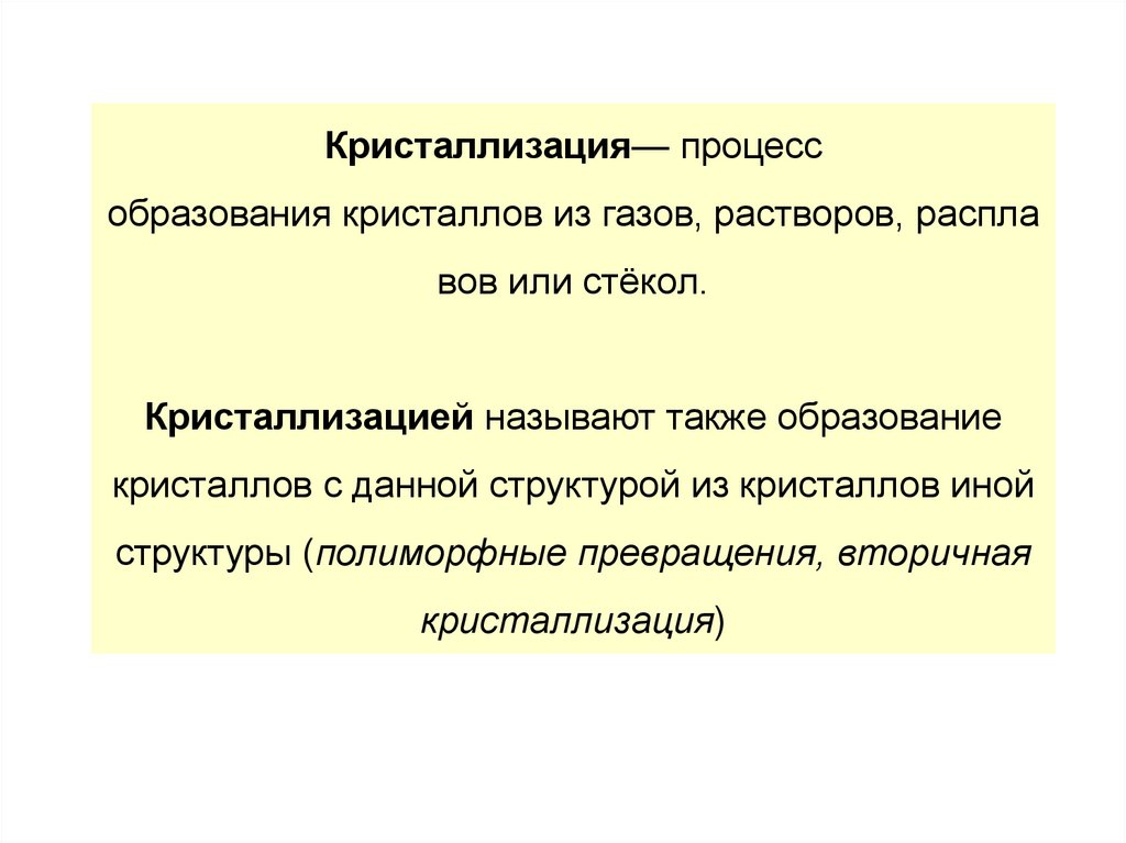 Кристаллизацией называют также образование