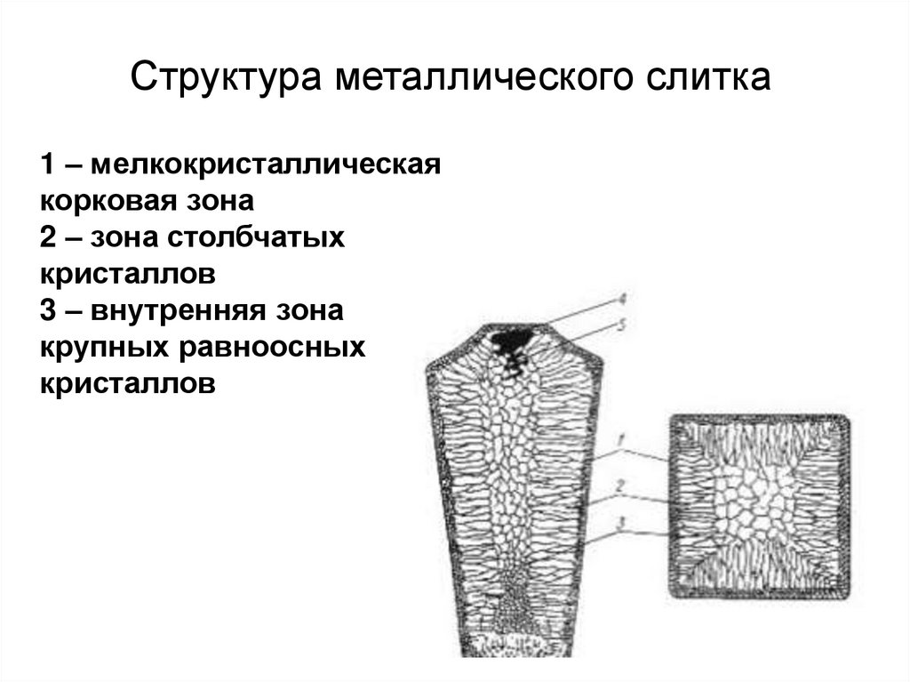 Структура металлического слитка1 – мелкокристаллическая