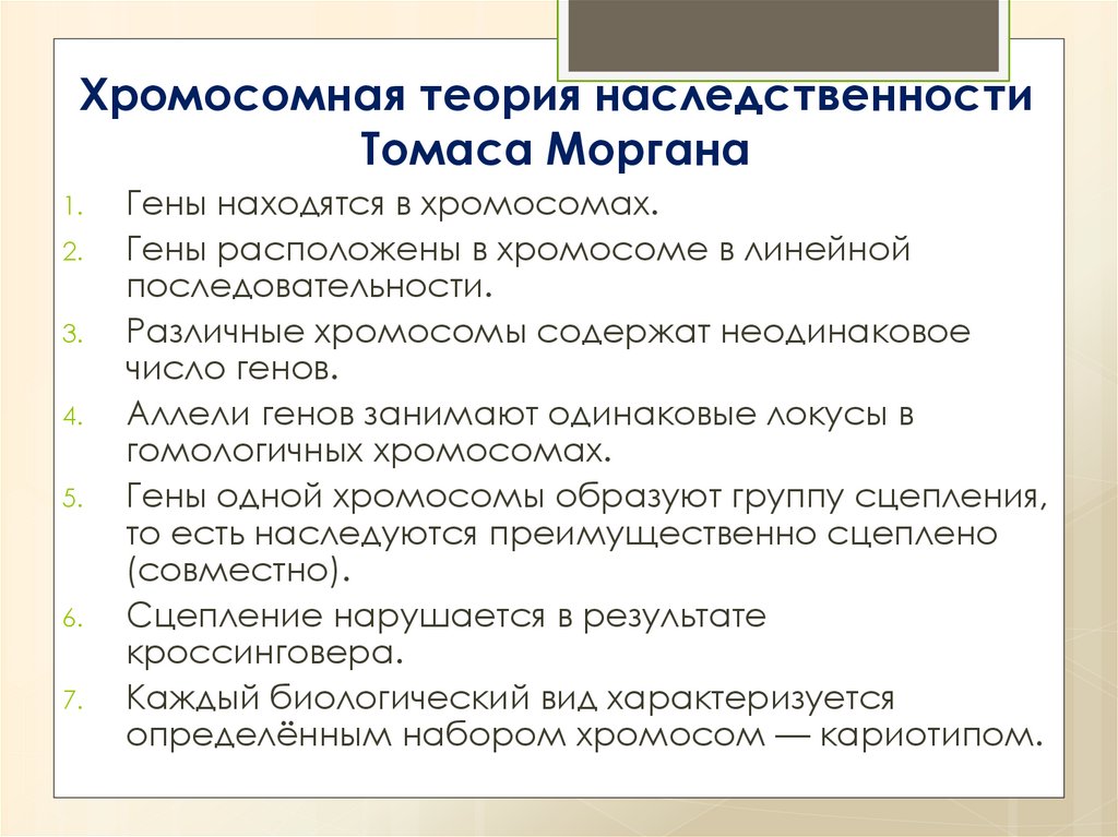 Хромосомная теория Т. Моргана. Матричные процессы в клетке