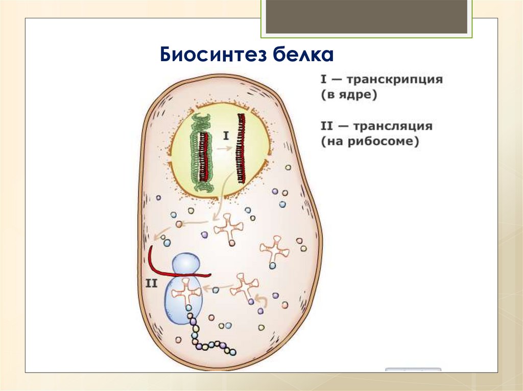 Трансляция – синтез белка на рибосоме вцитоплазме клетки
