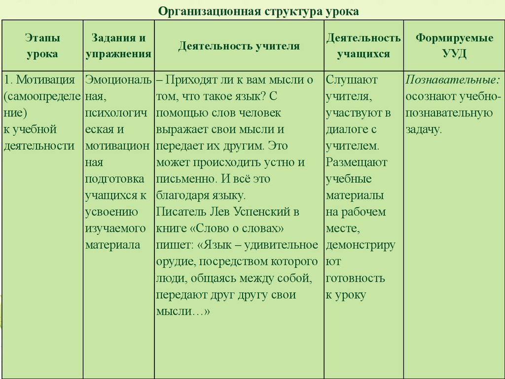 урока (письменно).