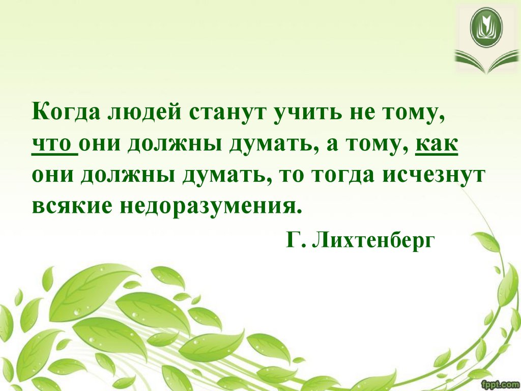 Когда людей станут учить не тому,что они должны думать, а тому, как