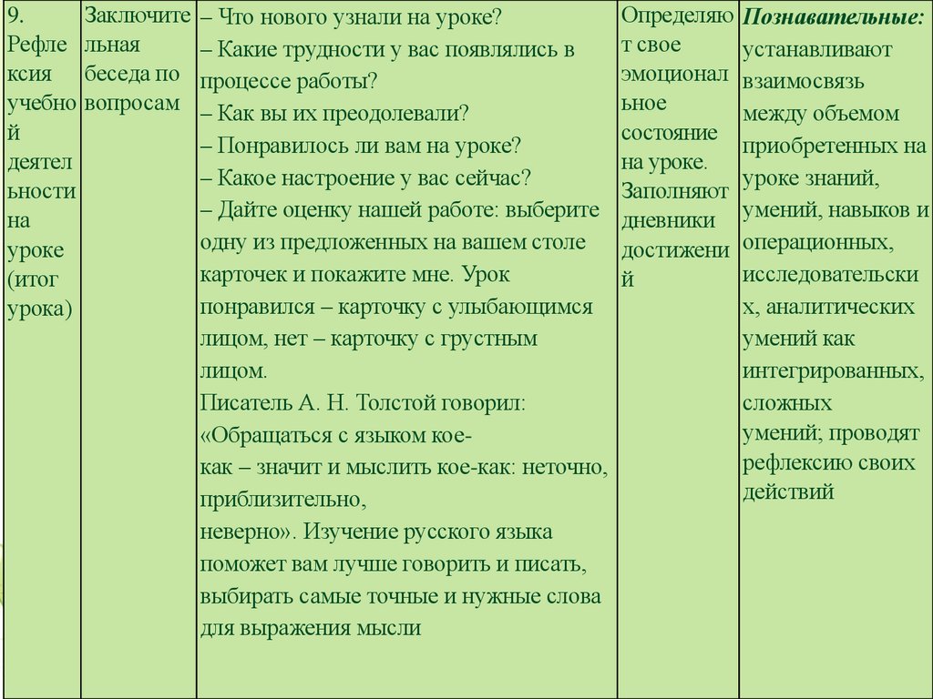 Познавательные УУД: рефлексия способов и условий действия, контроль и оценка