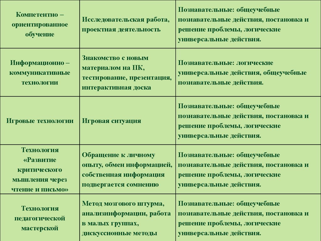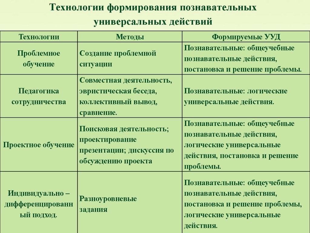 Формирование познавательных УУД через использование современных образовательных технологий