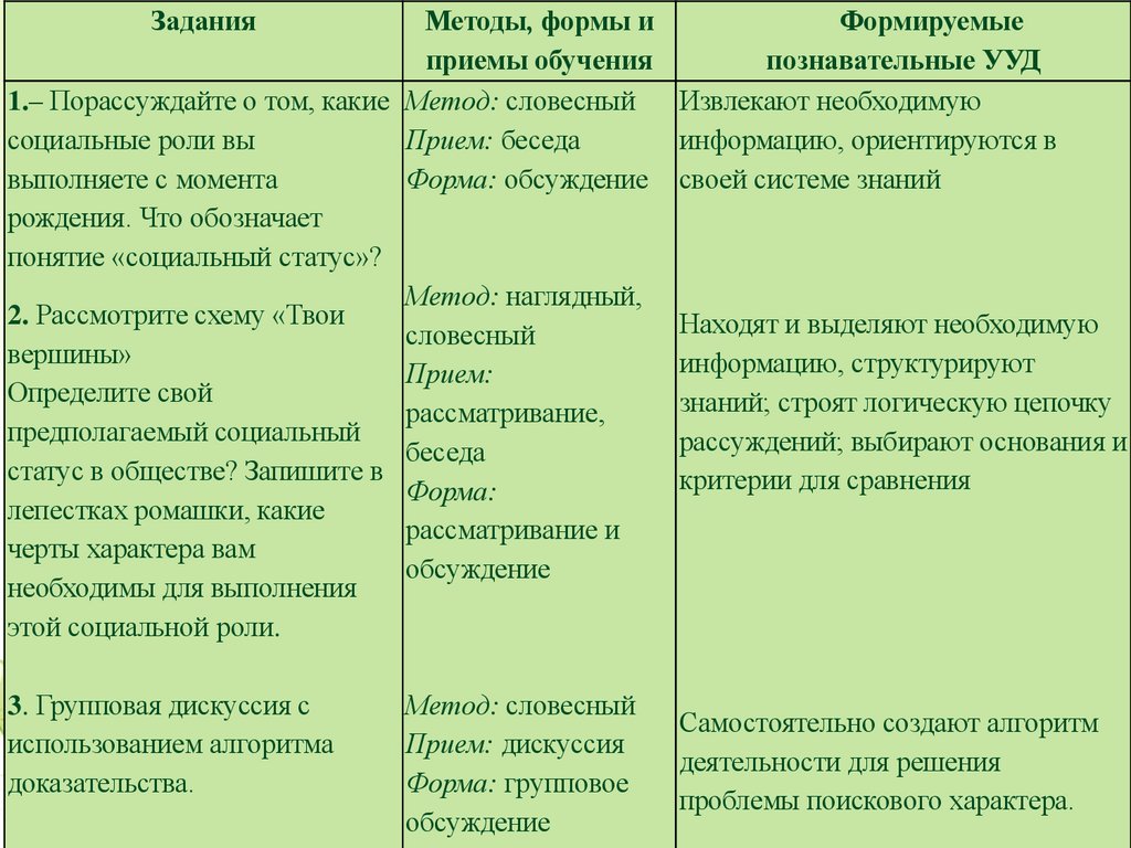 способов учебных и познавательных действий,