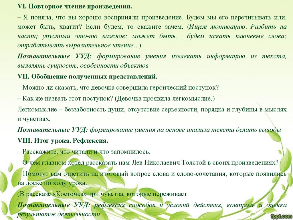 VI. Повторное чтение произведения.– Я поняла, что вы хорошо восприняли произведение. Будем мы его перечитывать или,