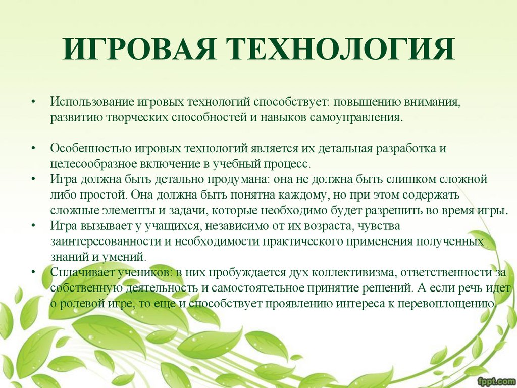 Особенностью игровых технологий является их детальная разработка и