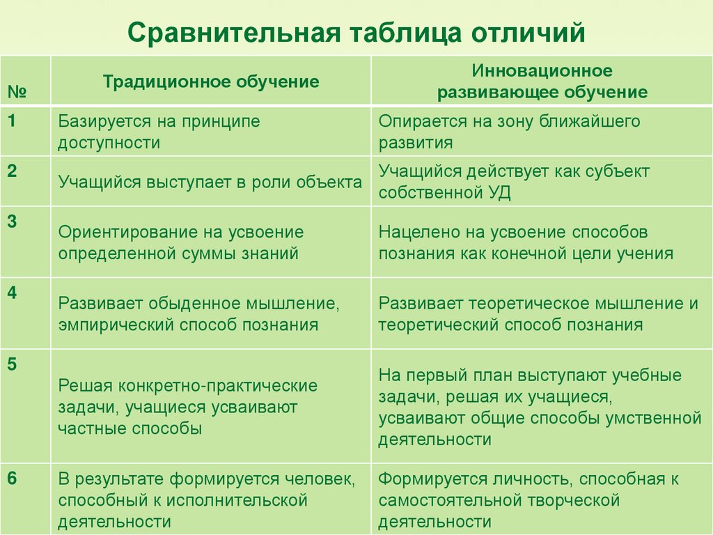 Сравнительная таблица отличий№