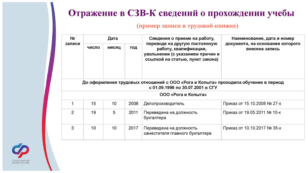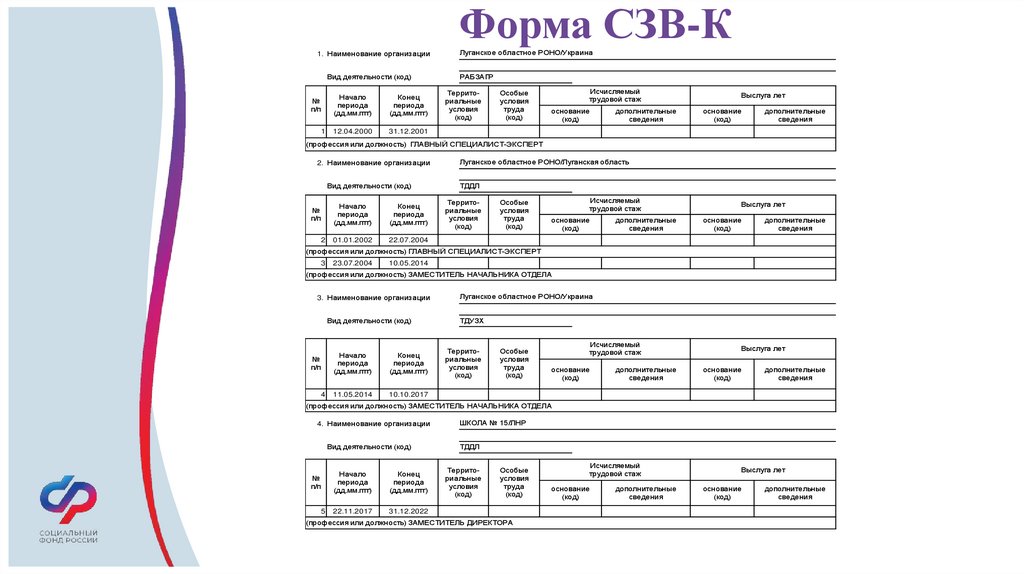 Форма СЗВ-КПериоды трудовой или иной общественно полезной деятельности