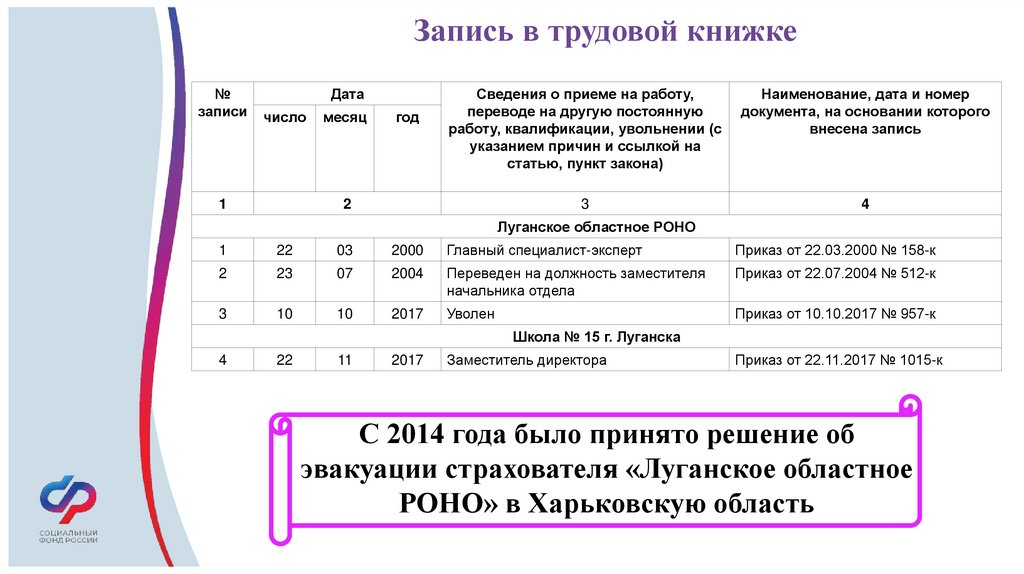 Сведения о трудовом стаже застрахованного лица за период до регистрации