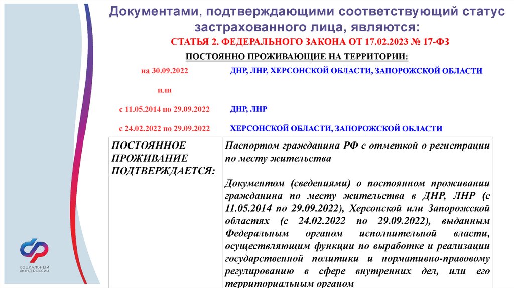 Факт постоянного проживания на территории Запорожской области или Херсонской