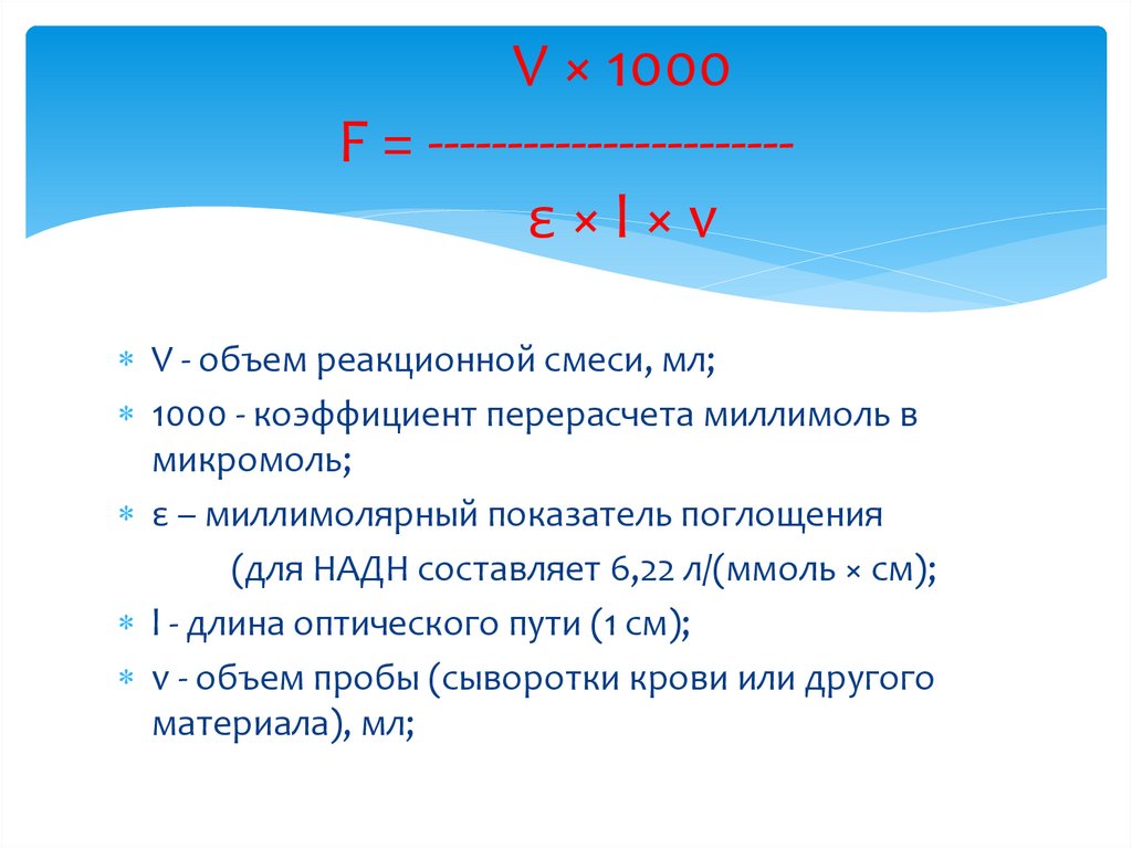 (для НАДН составляет 6,22 л/(ммоль × см);