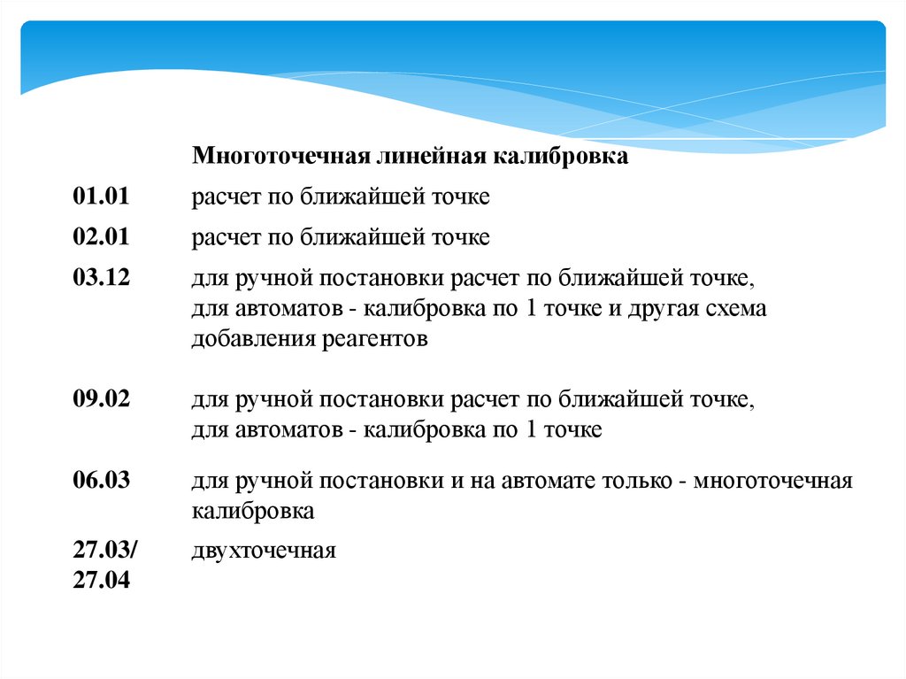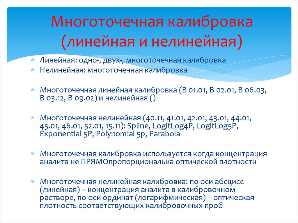 Многоточечная линейная калибровка (В 01.01, В 02.01, В 06.03,