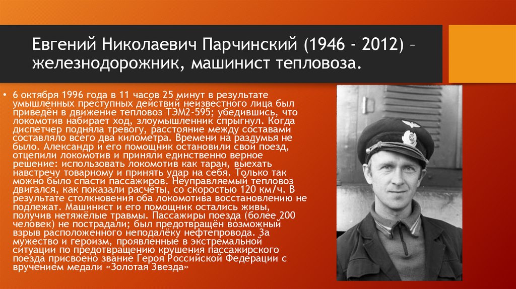 Евгений Николаевич Парчинский (1946 - 2012) –железнодорожник, машинист тепловоза.