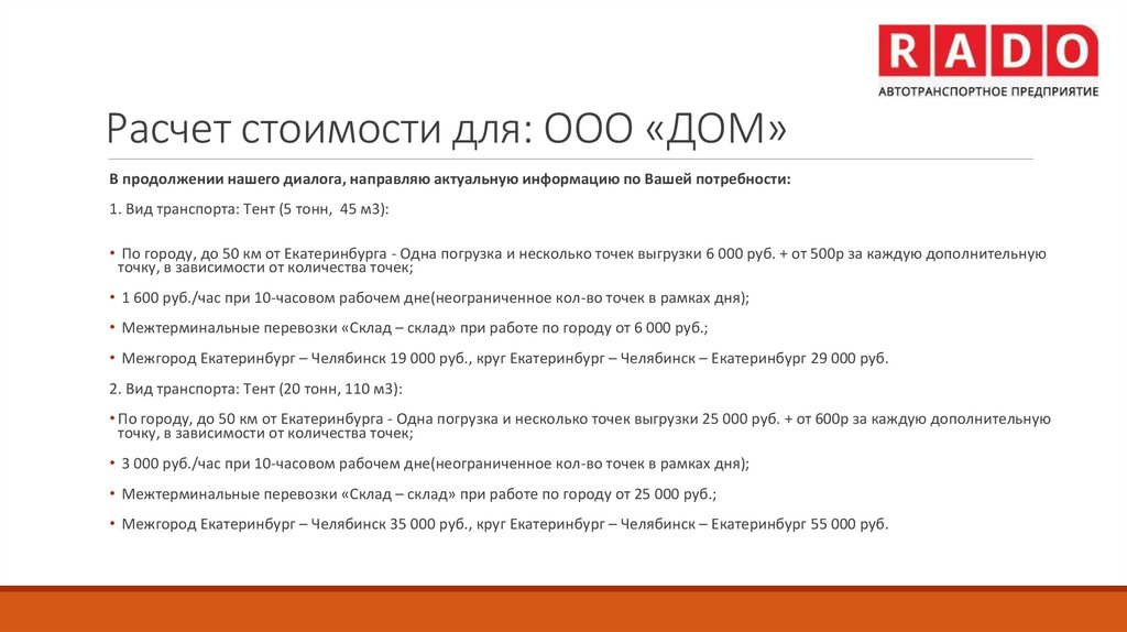 Расчет стоимости для: ООО «ДОМ»В продолжении нашего диалога, направляю актуальную информацию по Вашей потребности: