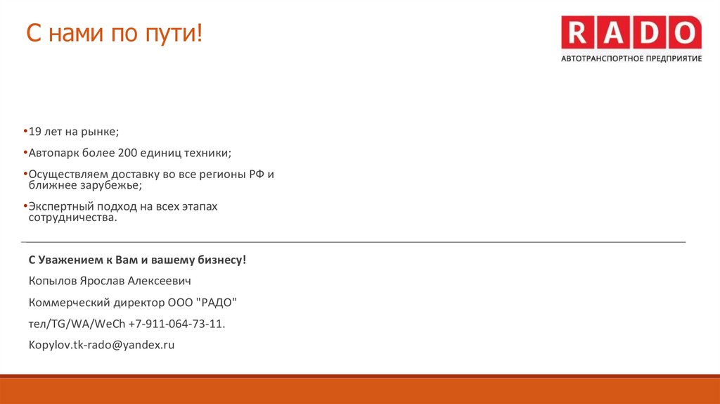 Персональное предложение. Индивидуальный подход и решение любых, даже нестандартных логистически