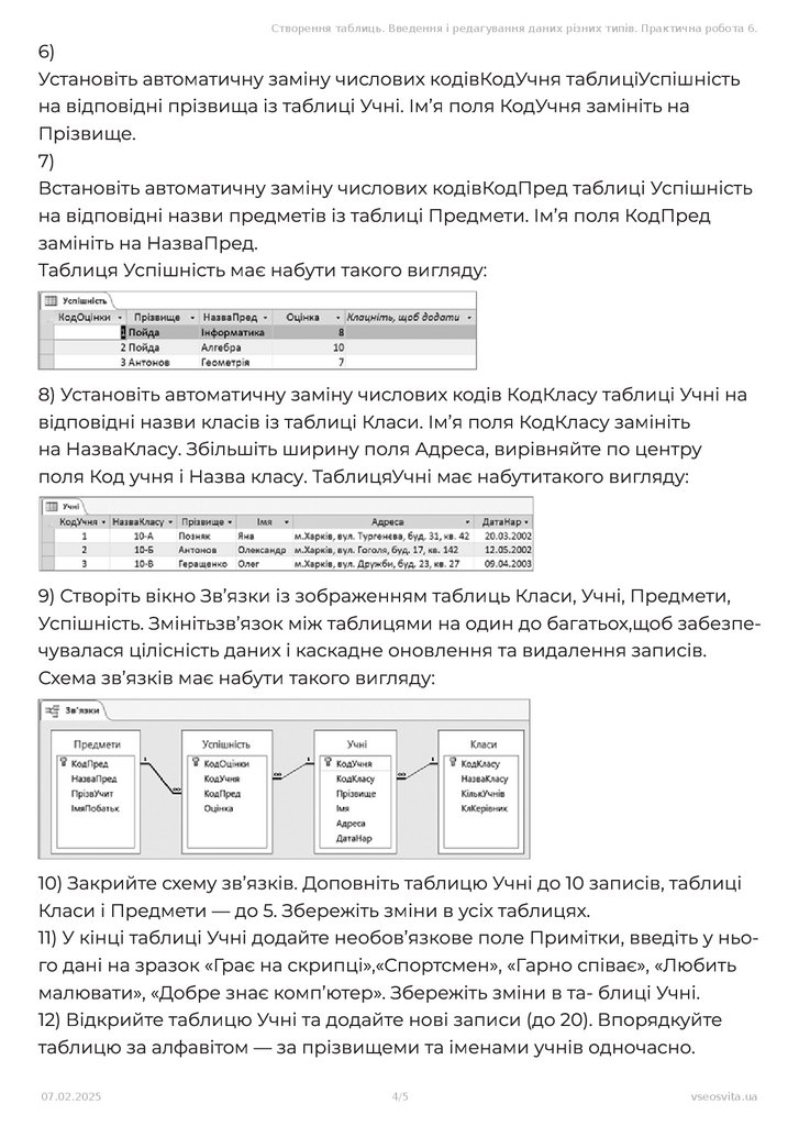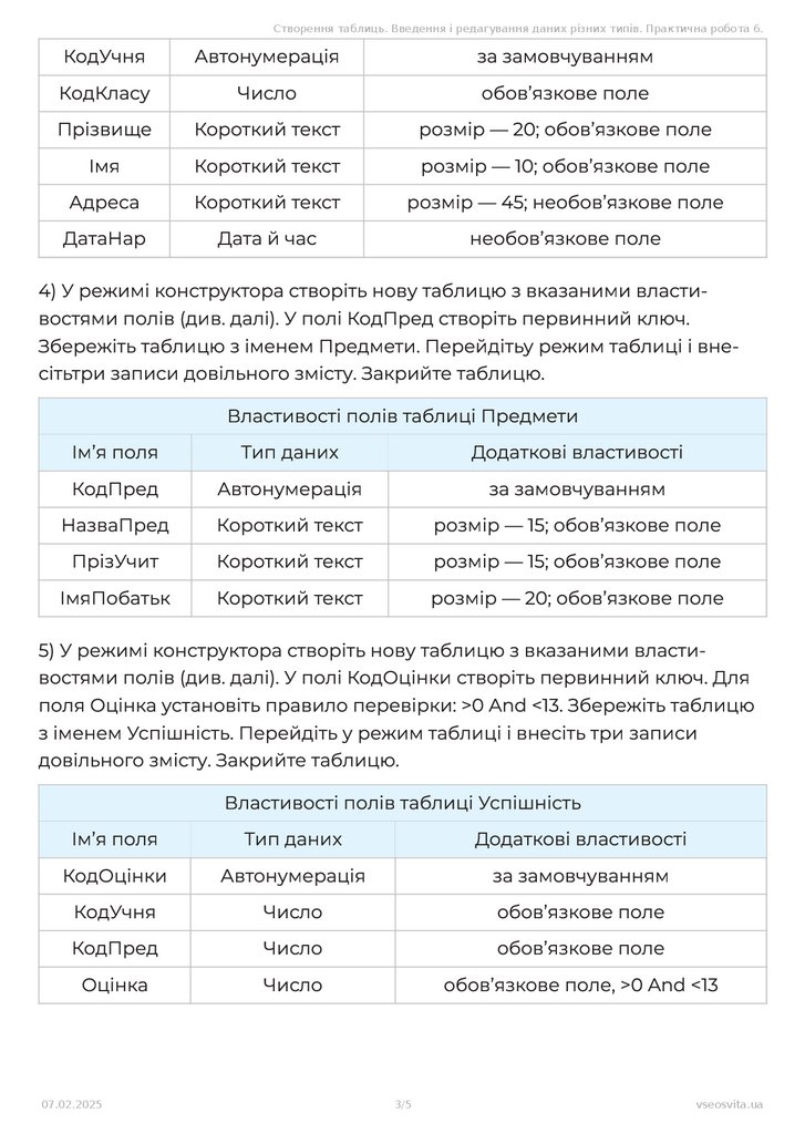 Створення таблиць. Введення і редагування даних різних типів. Практична робота 6.6)