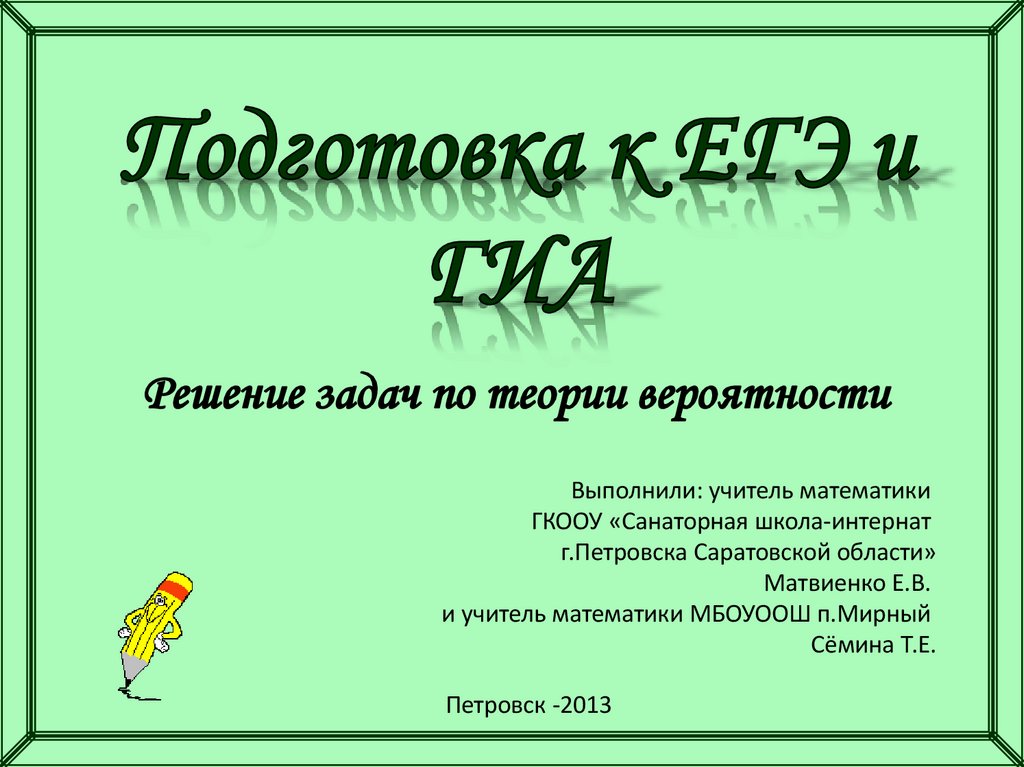 Решение задач по теории вероятностиВыполнили: учитель математики