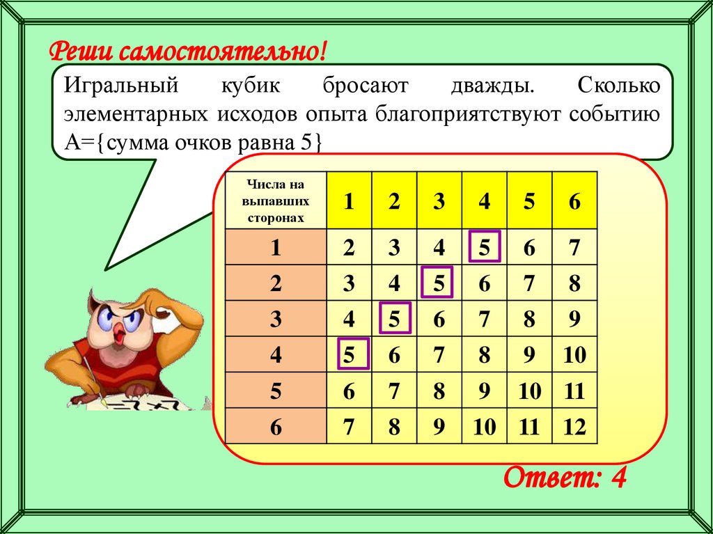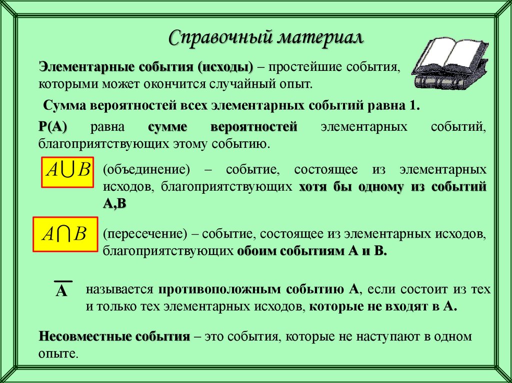 Справочный материалЭлементарные события (исходы) – простейшие события,