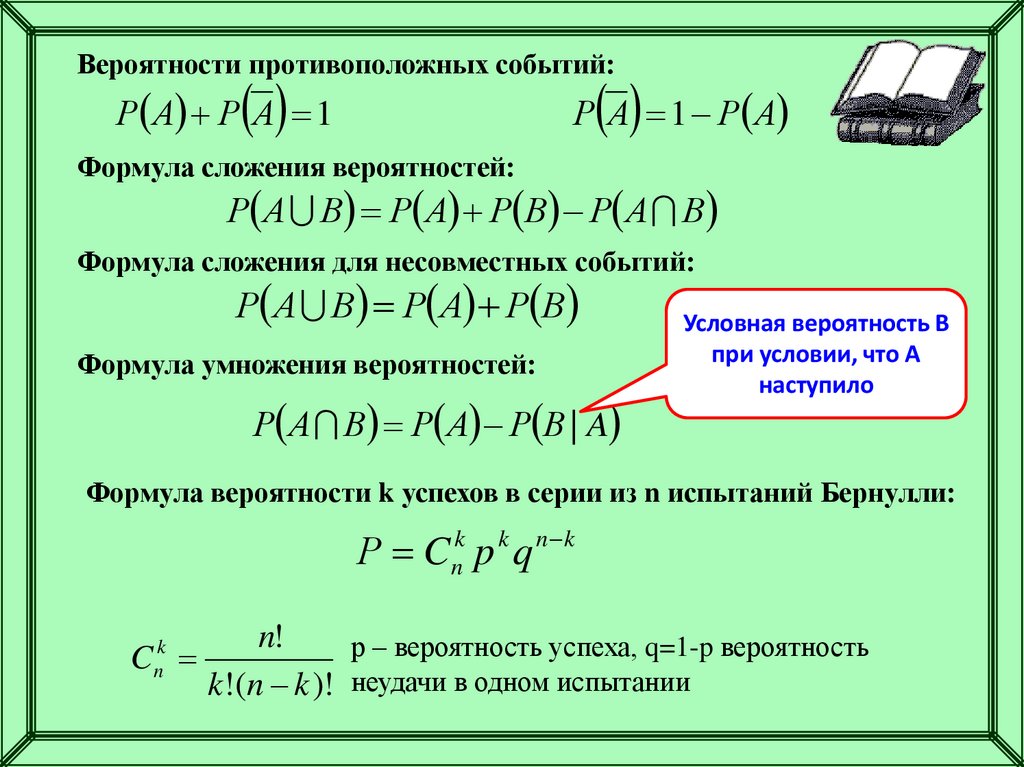 Формула вероятности k успехов в серии из n испытаний Бернулли: