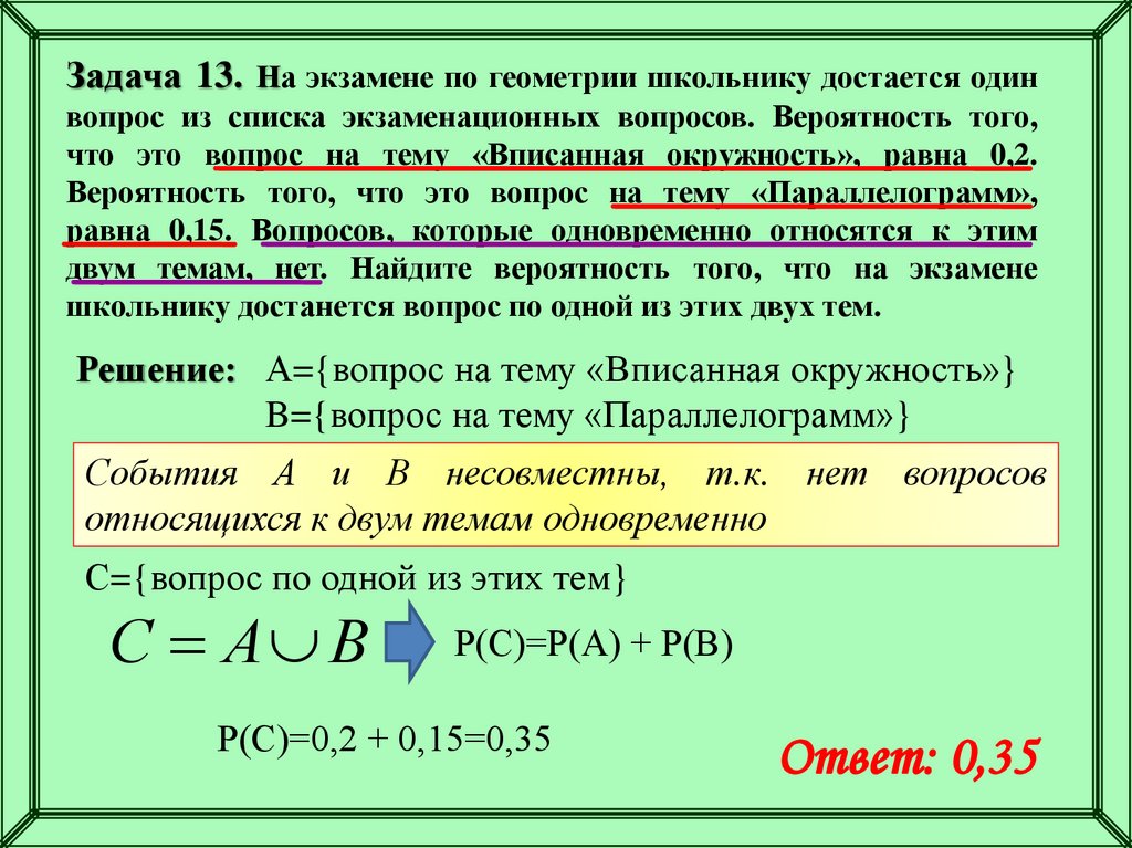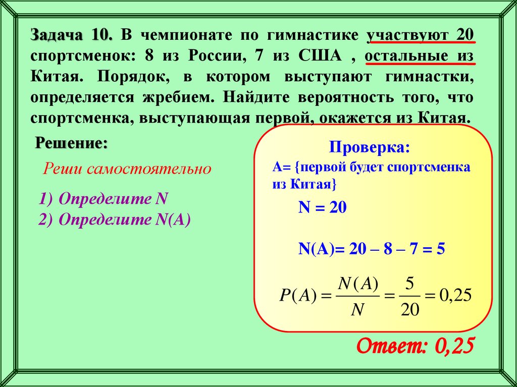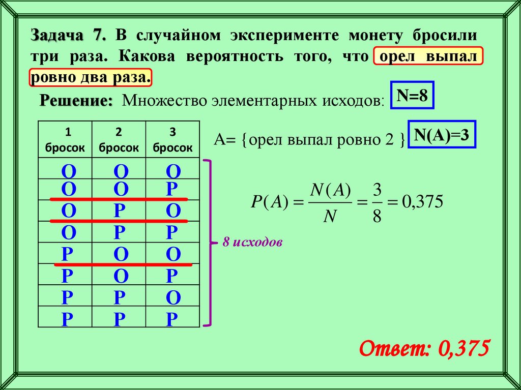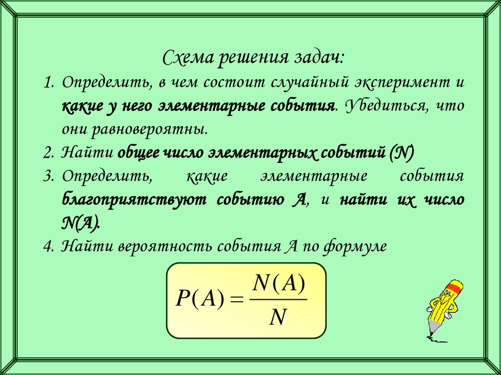 Схема решения задач:1. Определить, в чем состоит случайный эксперимент и