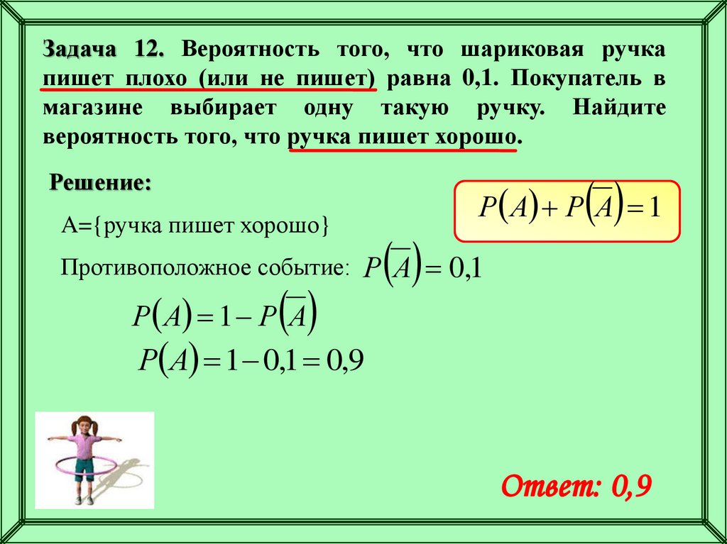 Решение: Переформулируем вопрос задачи. Найти вероятность того,