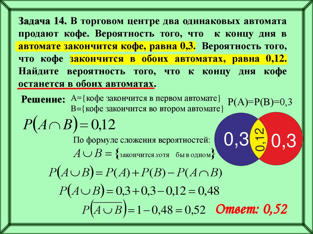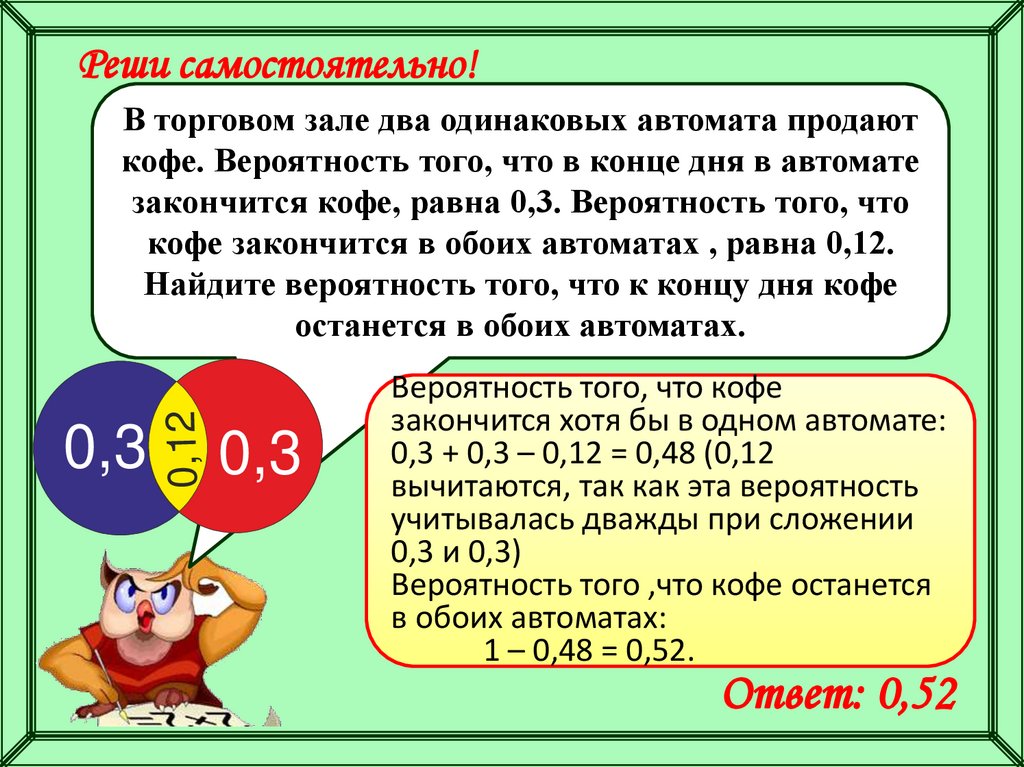 0,3 + 0,3 – 0,12 = 0,48 (0,12