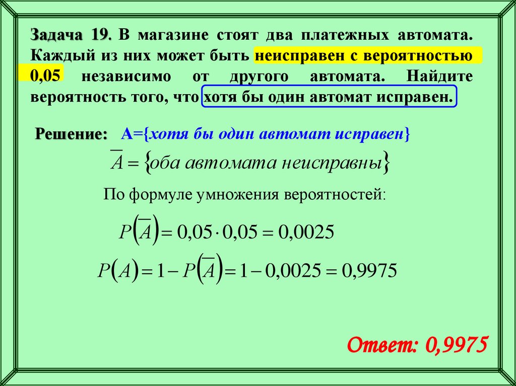 Задача 19. В магазине стоят два платежных автомата.Каждый из них может быть неисправен с вероятностью