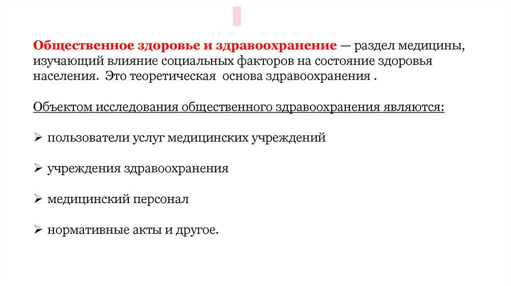 Общественное здоровье и здравоохранение — раздел медицины,изучающий влияние социальных факторов на состояние здоровья