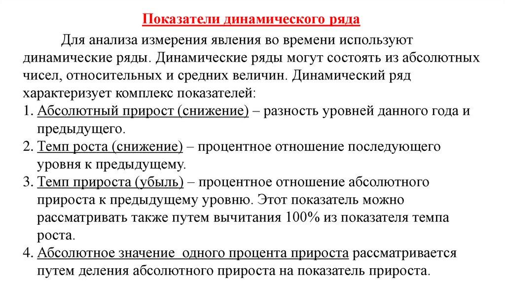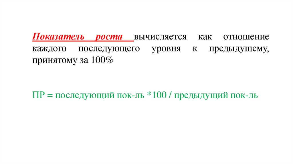 Показатель роста вычисляется как отношениекаждого последующего уровня к предыдущему,