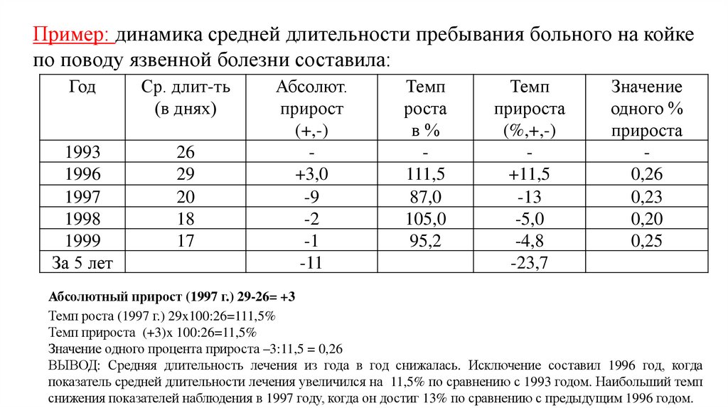 показатель средней длительности лечения увеличился на 11,5% по сравнению с 1993 годом. Наибольший темп