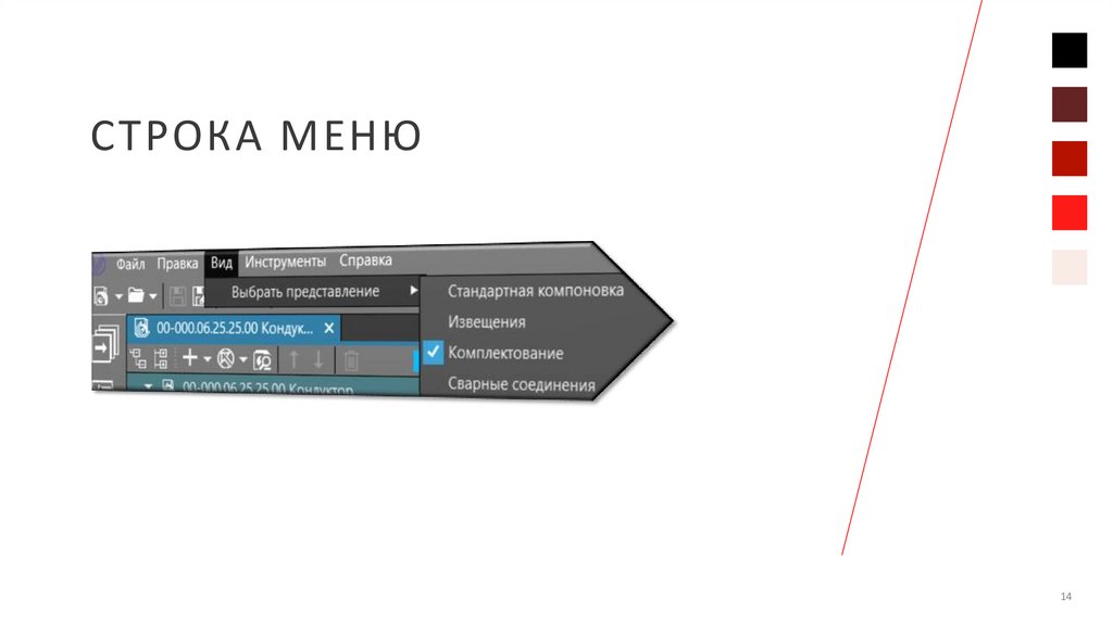 « Ко мплектов а ние » п р и п о м о щи р а здел а « В ид » на с т р о ке м е ню .