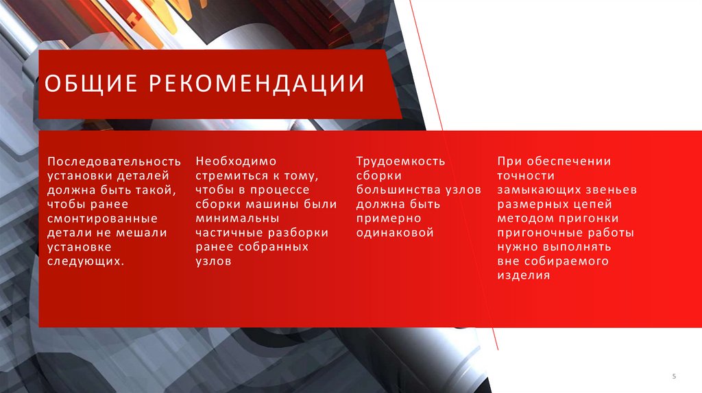 ОБЩИЕ РЕКОМЕНДАЦИИпоследовательности сборки