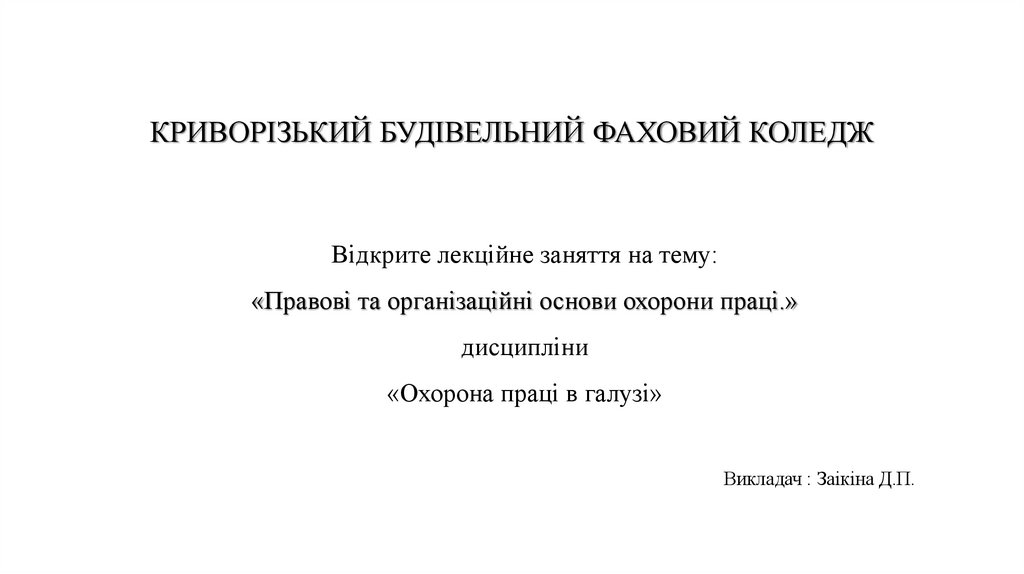 КРИВОРІЗЬКИЙ БУДІВЕЛЬНИЙ ФАХОВИЙ КОЛЕДЖВідкрите лекційне заняття на тему: