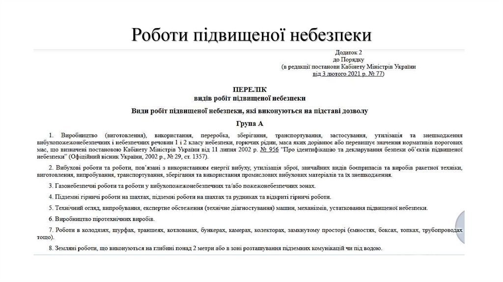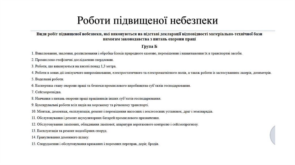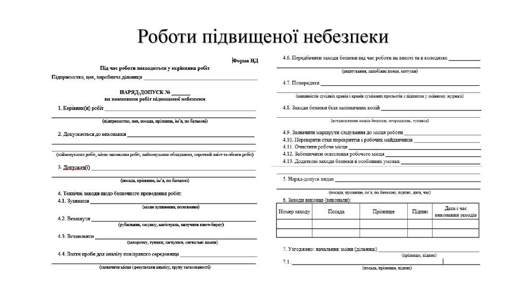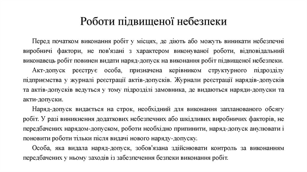 Роботи підвищеної небезпекиПеред початком виконання робіт у місцях, де діють або можуть виникати небезпечні