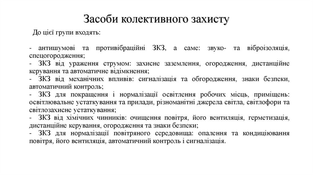 - ЗКЗ від хімічних чинників: очищення повітря, його вентиляція, герметизація,