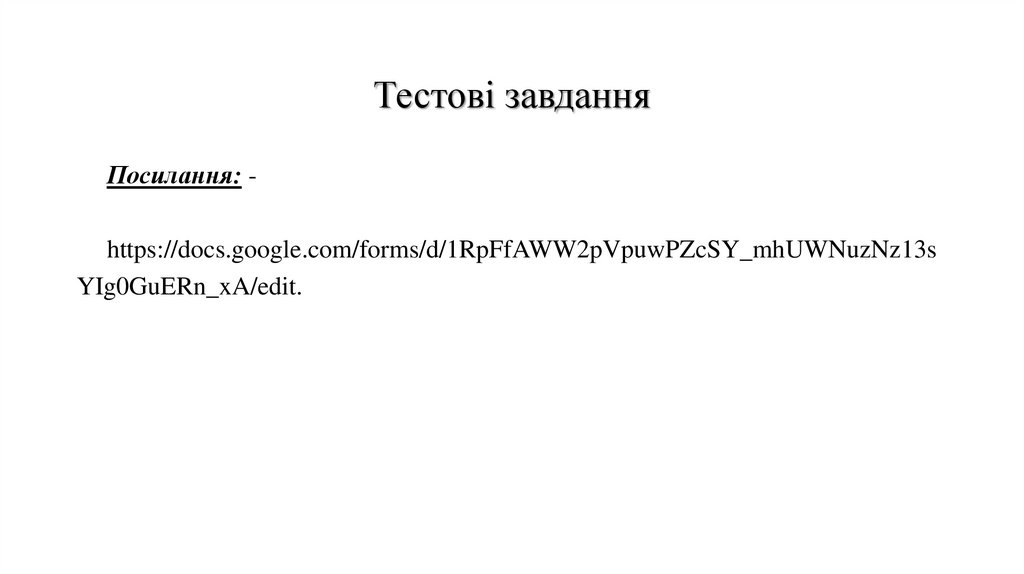 Тестові завданняПосилання: https://docs.google.com/forms/d/1RpFfAWW2pVpuwPZcSY_mhUWNuzNz13s