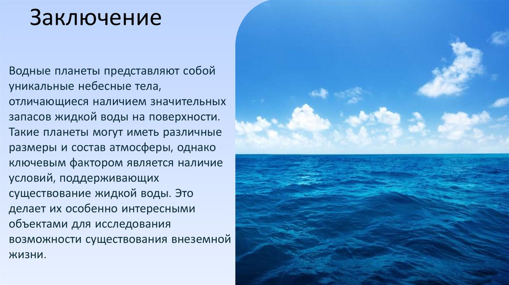 ЗаключениеВодные планеты представляют собой