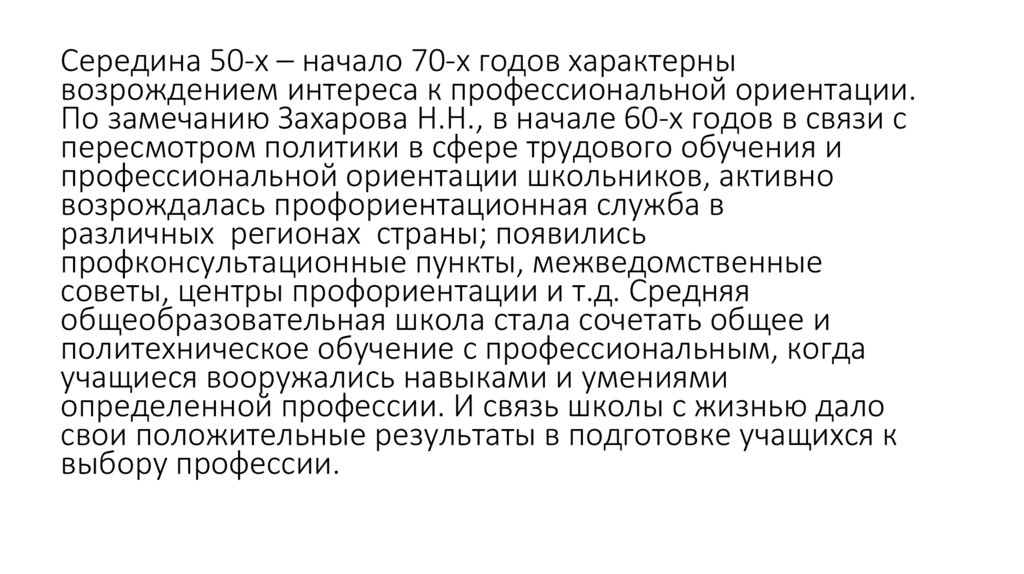 Середина 50-х – начало 70-х годов характернывозрождением интереса к профессиональной ориентации.
