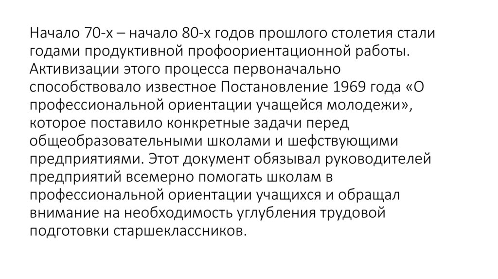 Начало 70-х – начало 80-х годов прошлого столетия сталигодами продуктивной профоориентационной работы.