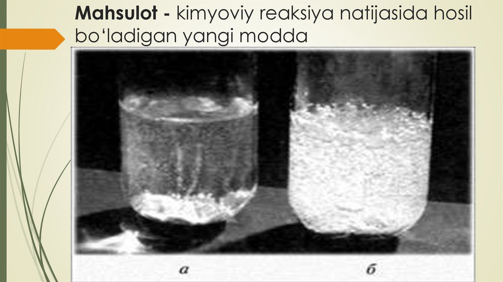 Mahsulot - kimyoviy reaksiya natijasida hosilbo‘ladigan yangi modda