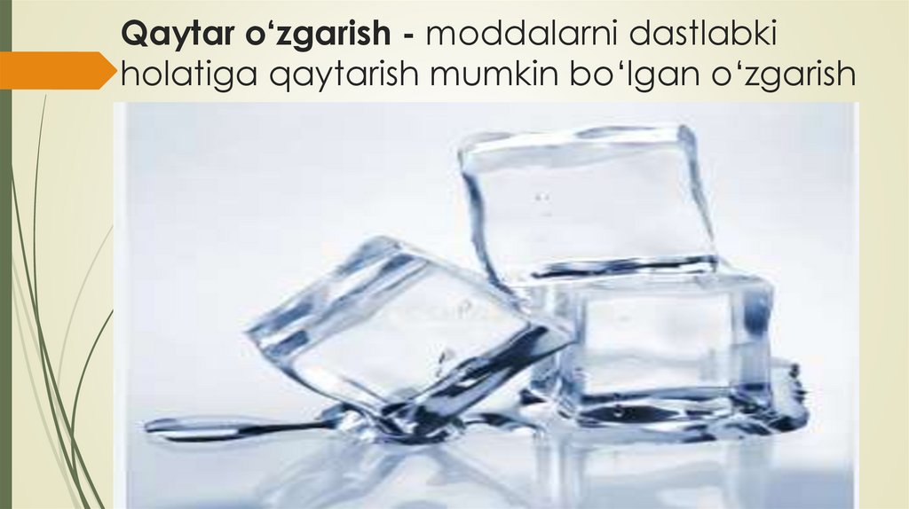 Qaytar o‘zgarish - moddalarni dastlabkiholatiga qaytarish mumkin bo‘lgan o‘zgarish