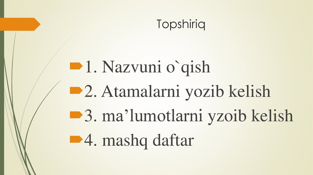 2. Tadqiq etiladigan savollar ro‘yxatini tuzing.