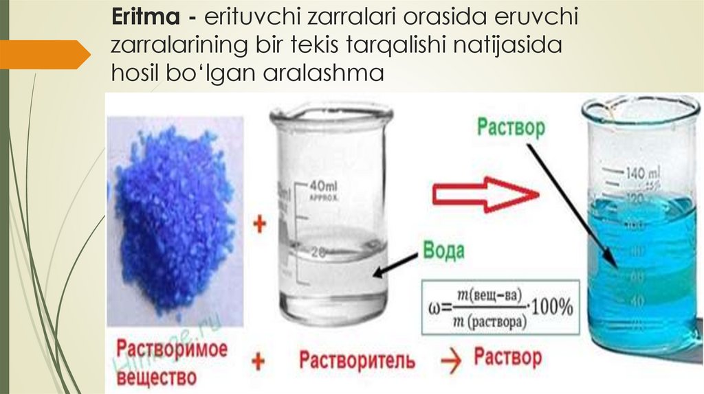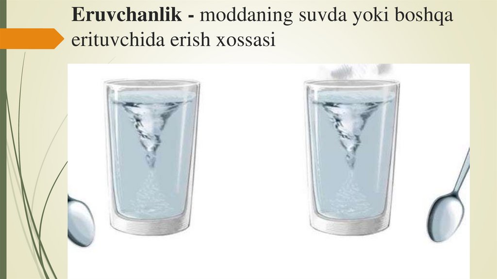 Eruvchanlik - moddaning suvda yoki boshqaerituvchida erish xossasi