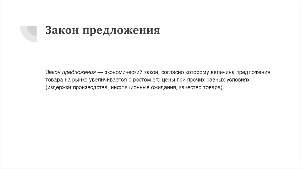 Закон предложенияЗакон предложения — экономический закон, согласно которому величина предложения