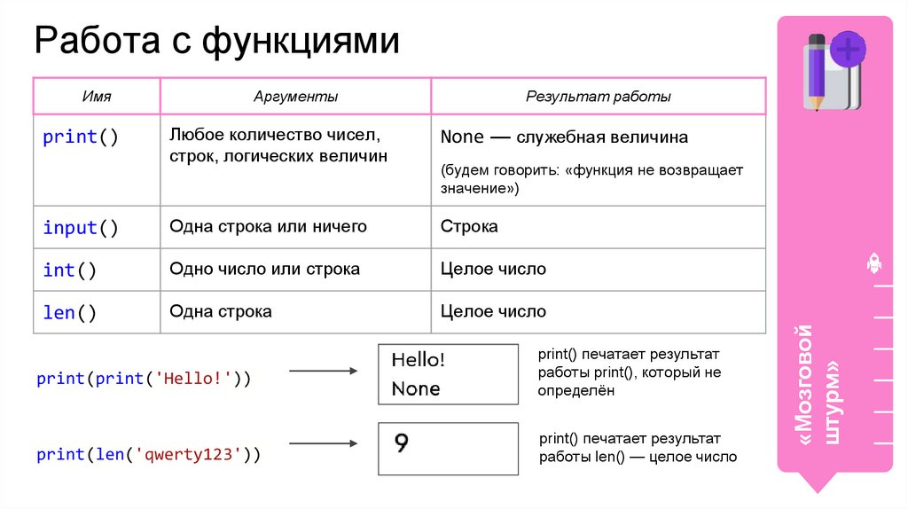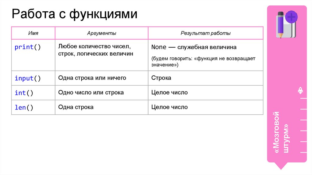 Модуль 3. Урок 1. Функции«Мозговой штурм»: